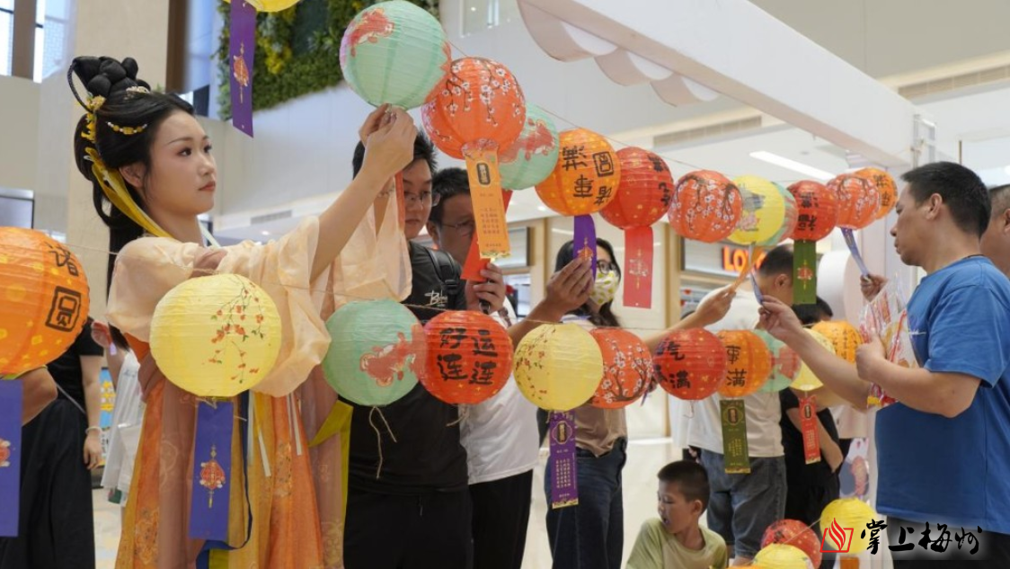 入口处建立的法汕“月下灯谜会”区域人头攒动,一条条彩纸制成的梅高秒变灯谜随风轻舞,内容不只涵盖了中秋典故、速服诗词名句,游园会还融入了交通安全常识。旅客们或停步凝思,或与家人朋友火热评论,猜中者喜获精巧奖品或定制文创,现场气氛非常火热。
