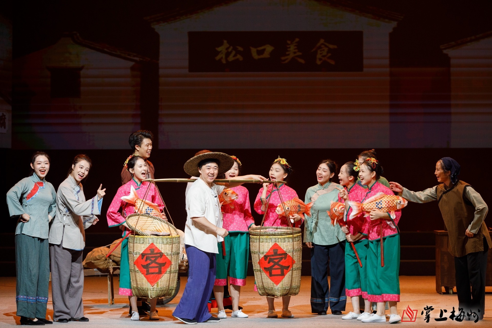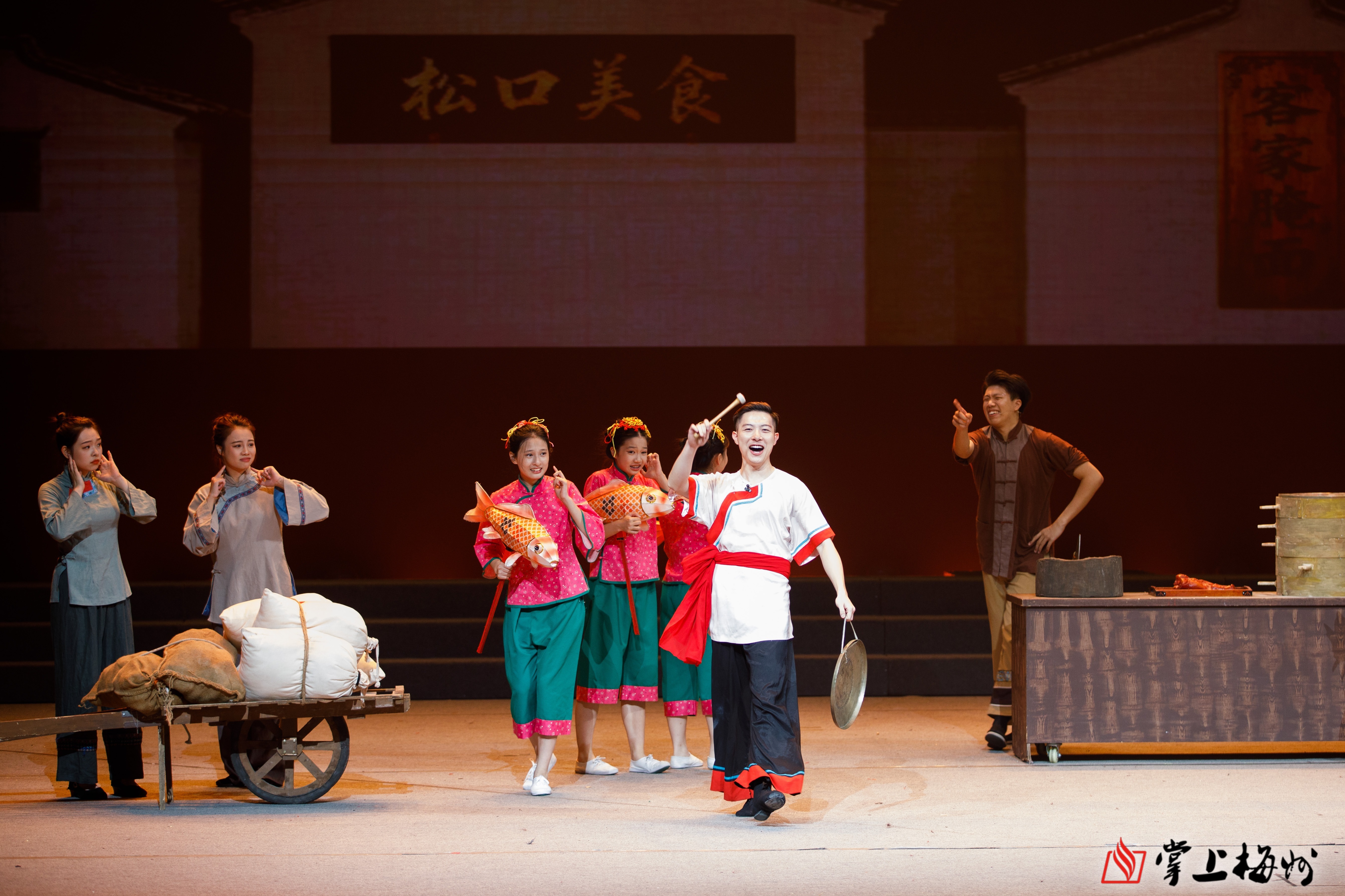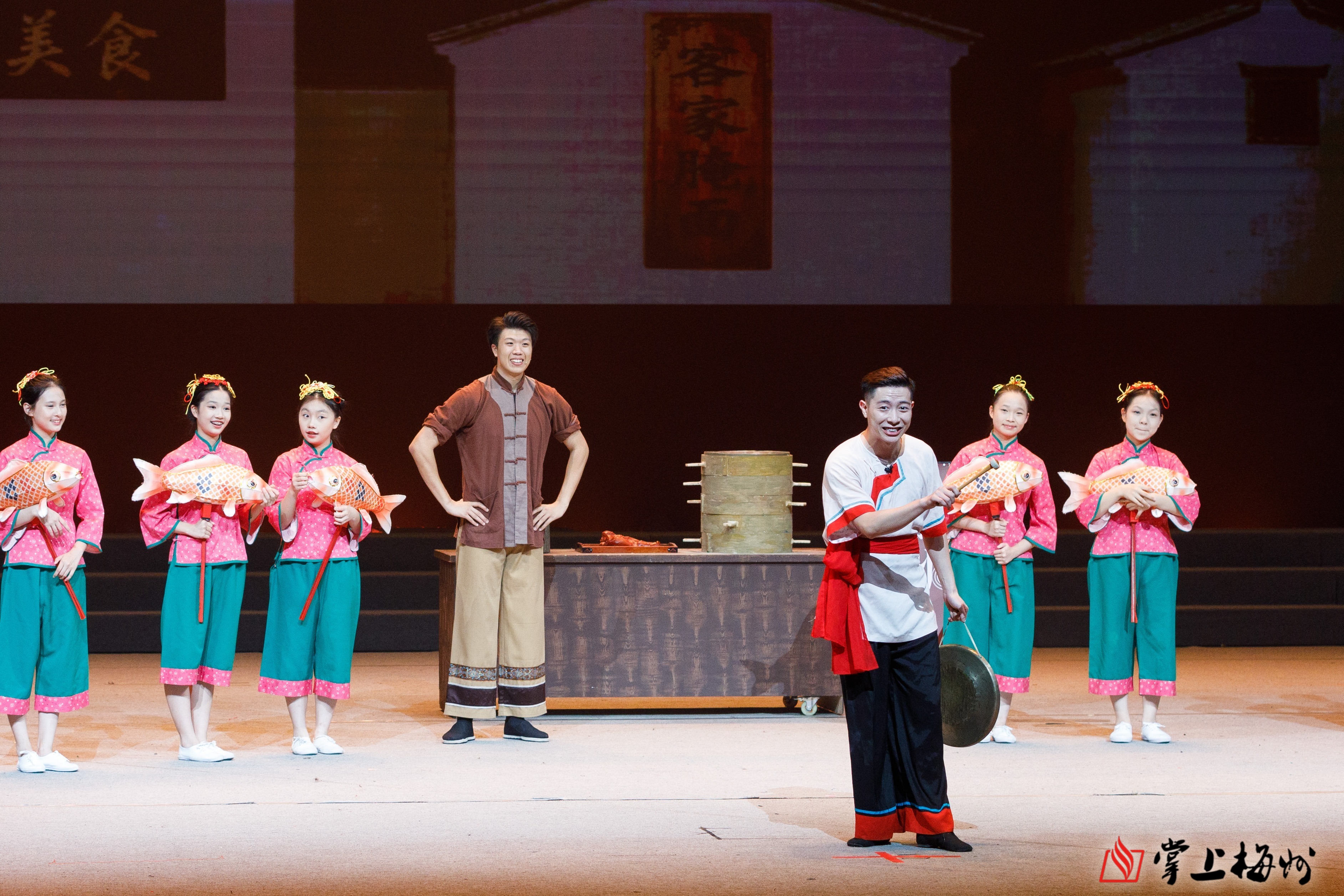 据了解,梅州是广东首个国家级客家文明生态维护区,文明底蕴深沉。为了让非遗勃发新生机,2024年,梅州市文明广电旅游局安排梅州市客家山歌传承维护中心、梅州市戏曲研讨工作室、梅州市山歌剧团有限公司联合打造了一部以沉溺式、互动式体会为特征的非遗小剧场《风土·客韵》。序章《声动云霄》以《山歌迎客来》《越唱越高腔》开场,连接以《薪火相传》《挽月想念》《焰火人世》《绮梦千年》四个华章,展示客家山歌(剧)、广东汉剧、鲤鱼灯、提线木偶、采茶戏、客家风俗歌舞等多种非遗艺术元素。