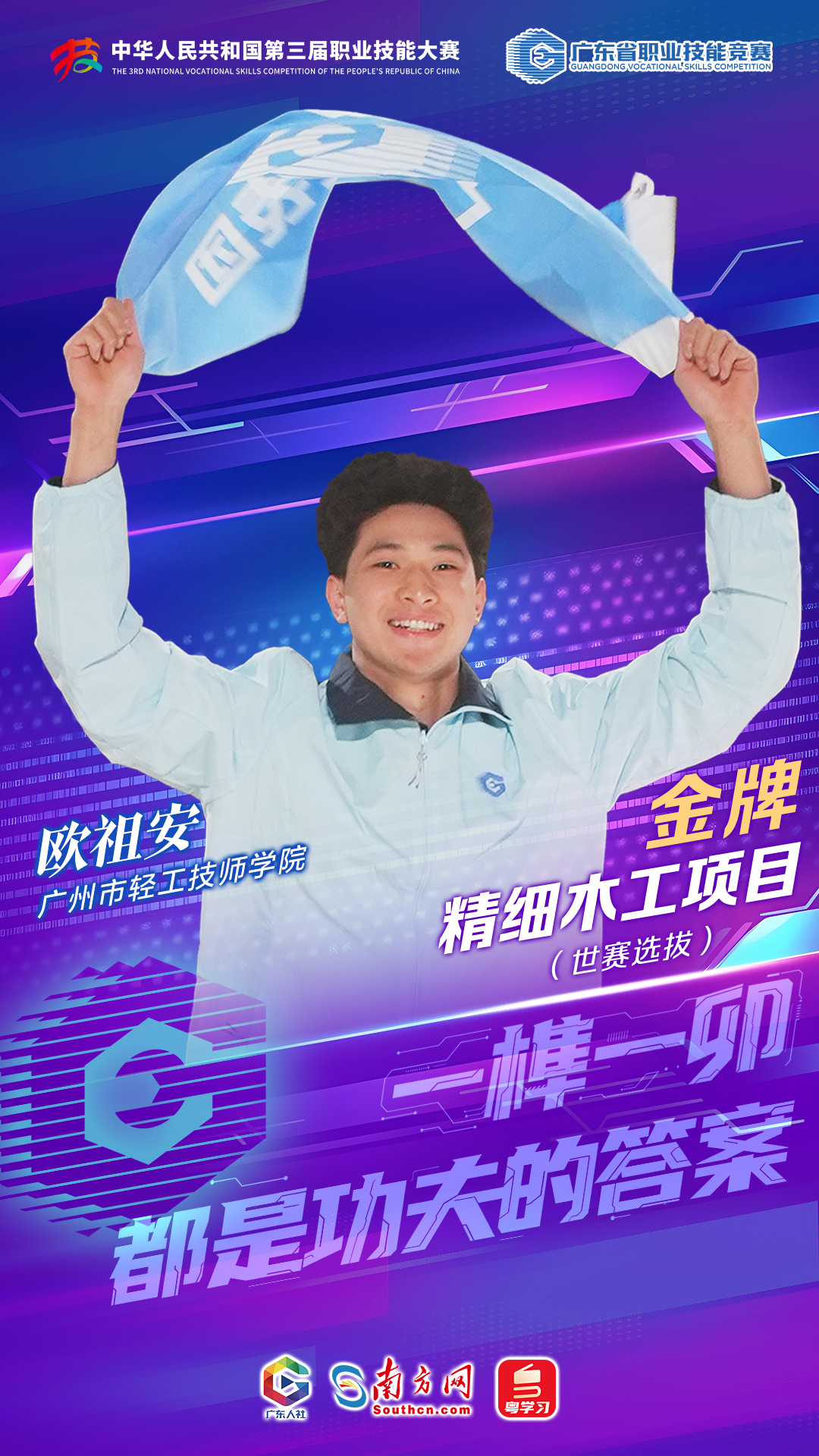 下面向咱们走来的是。广东队!TA们。用双手界说精准。用技术点亮未来。第三届全国技术大赛。广东14位金牌得主集结结束。高能海报今天全网首发。↓↓↓。每一块金牌背面。都是无数个日夜的据守。都是千万次重复的 老太婆牲交全过程