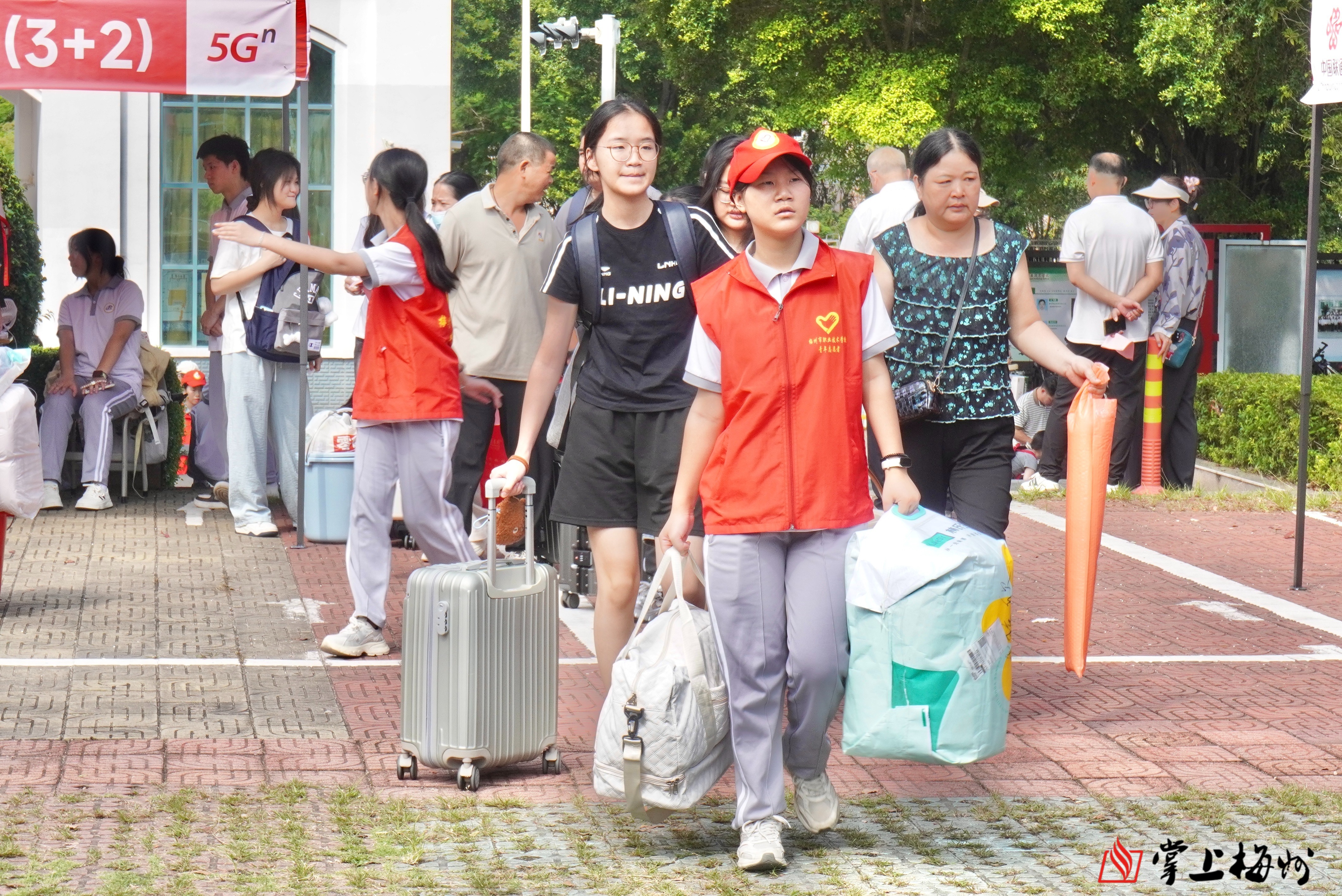 梅州第一批“中本贯穿”重生在梅州市工作技术校园签到。(吴海清 摄)。