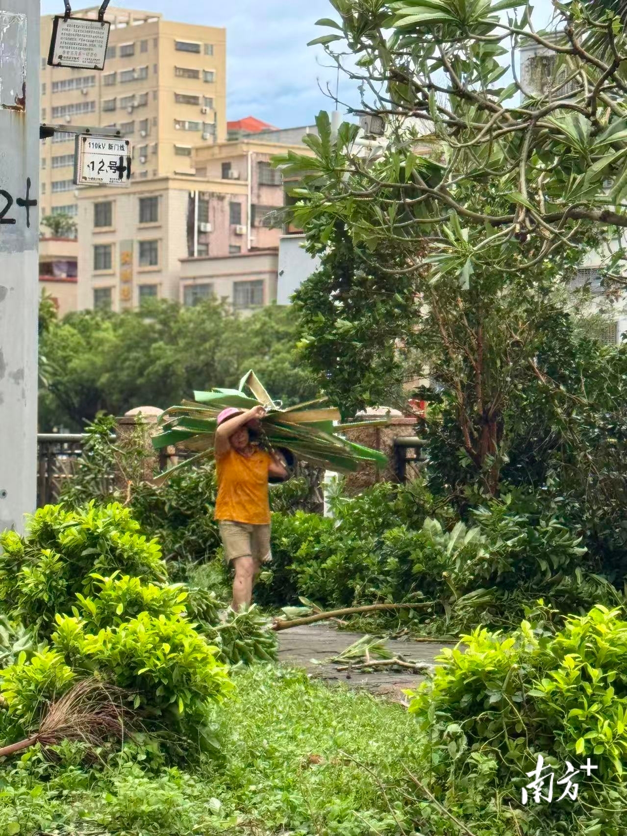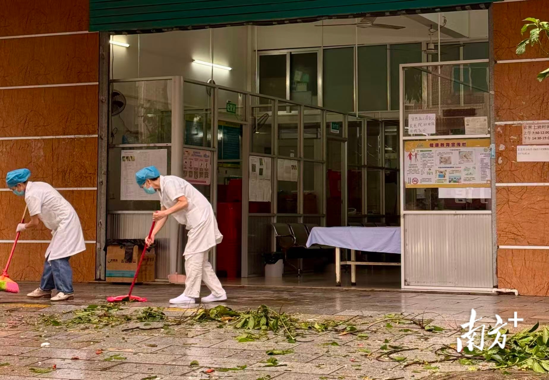 但风雨刚歇,这座县城的生命力便开端涌动。早上7时许,一家诊所门前已根本收拾结束,医护人员正细心打扫最终几片残叶。沿街可见拿着东西收拾断枝的居民,也有商铺店东们修补被暴风损坏的招牌。