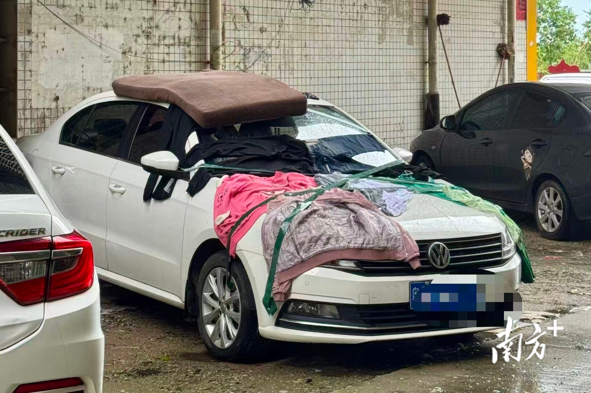 汽车上坠落的风雨杂物 南边+ 王越莹 拍照。