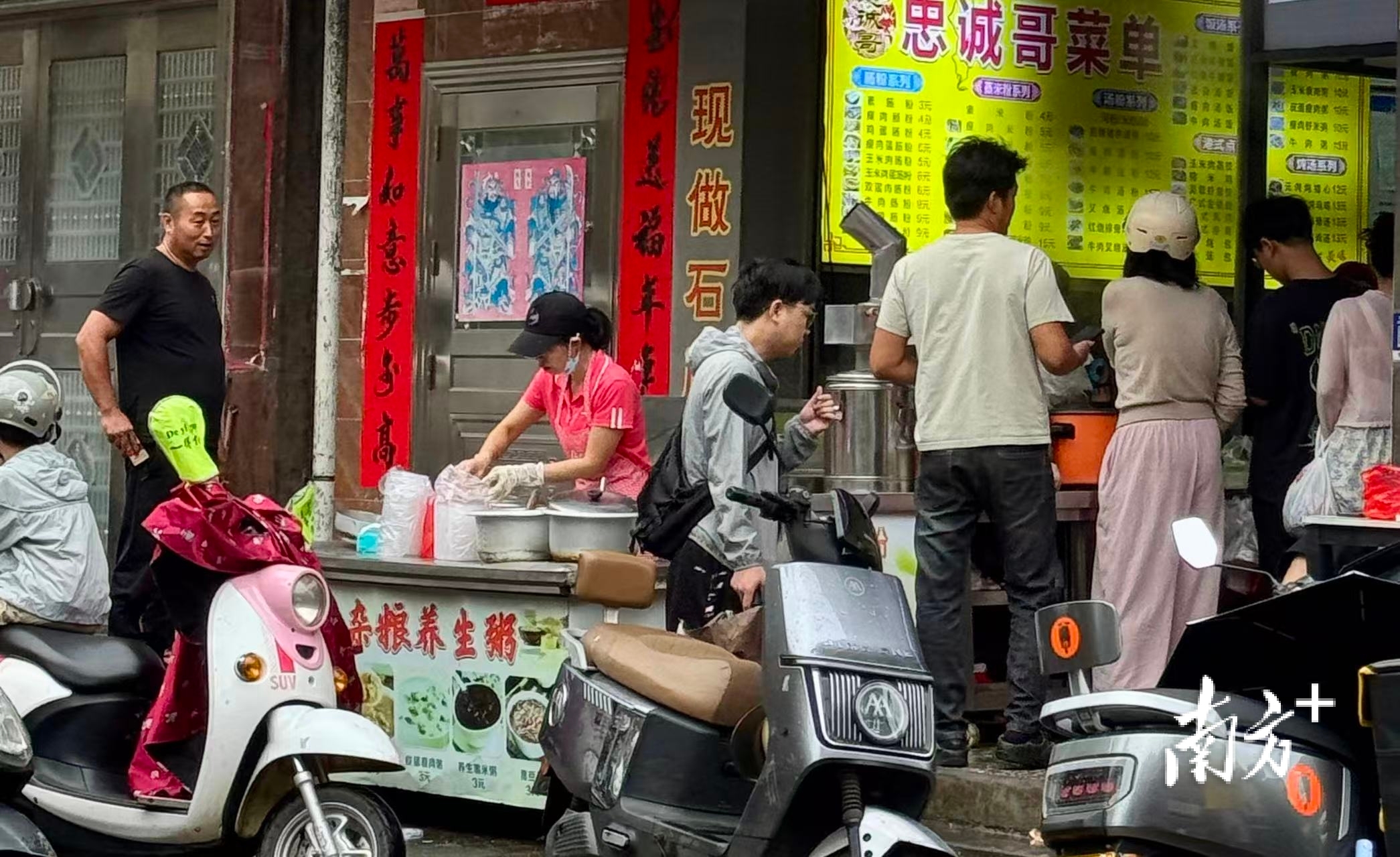 早餐店现已开端经营,居民们在有序排队 南边+ 王越莹 拍照。